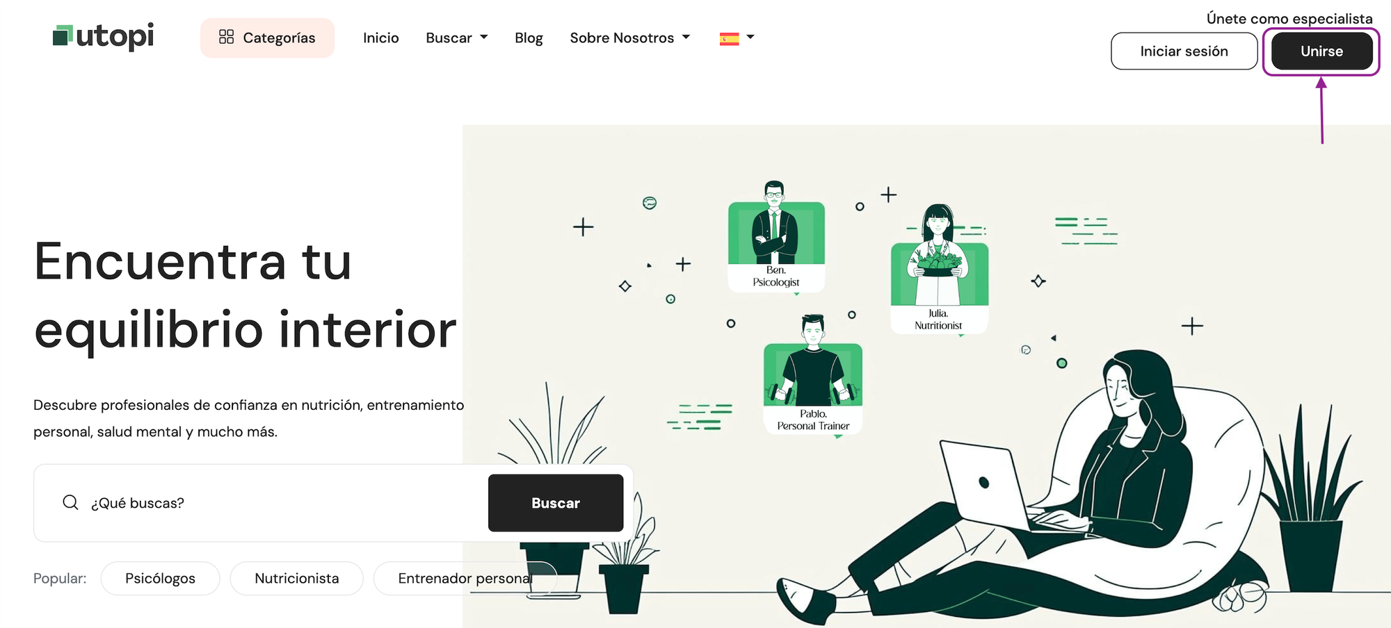 Crear una cuenta de especialista en Utopi es muy fácil. Acá te explicamos unos sencillos pasos: