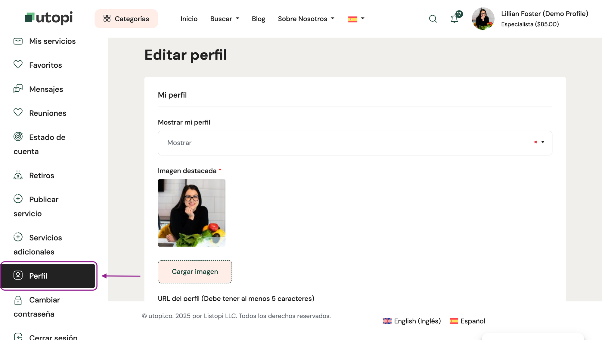 Cambiar la URL del perfil es muy útil para personalizarlo y hacerlo más fácil de compartir. Desde la página de Editar perfil, puedes definir un enlace único que represente tu identidad como especialista dentro de la plataforma. Este enlace se mostrará públicamente en tu perfil y te permitirá mejorar tu visibilidad cuando lo compartas a través de redes sociales, mensajes o tu portafolio profesional.