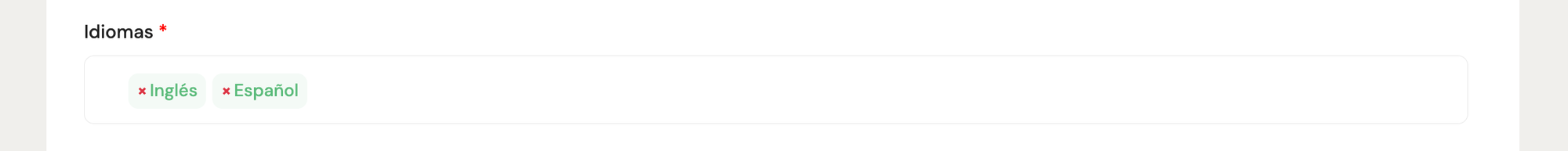 Estos campos te permiten elegir varias opciones al mismo tiempo, lo cual es útil para describir tu perfil con mayor precisión. Por ejemplo, puedes seleccionar múltiples categorías, formatos de servicio, idiomas, entre otros.