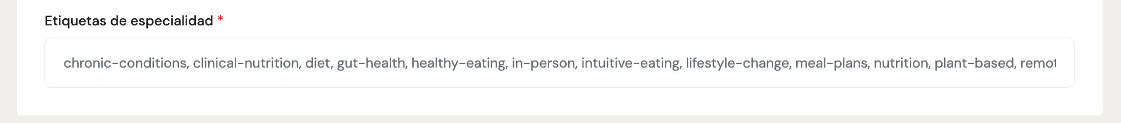 💡 Consejo: elige etiquetas precisas, bien escritas y realmente relevantes para tu servicio. Algunos ejemplos pueden ser: nutrición-clínica, salud-intestinal, planes-alimentarios, hábitos-saludables o sesiones-presenciales.